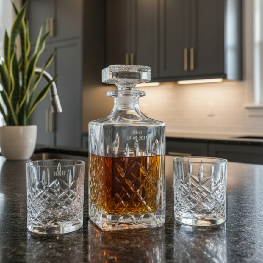 Geweldig mooi gedaan! De gegraveerde initialen op de glazen en karaf maken het extra speciaal. Luxe kwaliteit en snelle service.